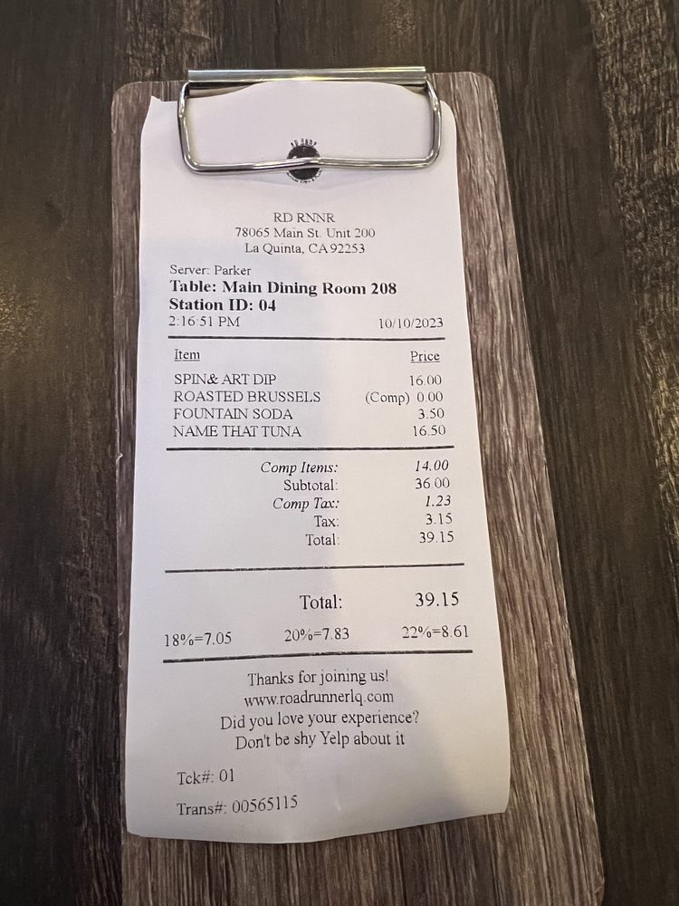 RD RNNR- roadrunner Old Town La Quinta Menu